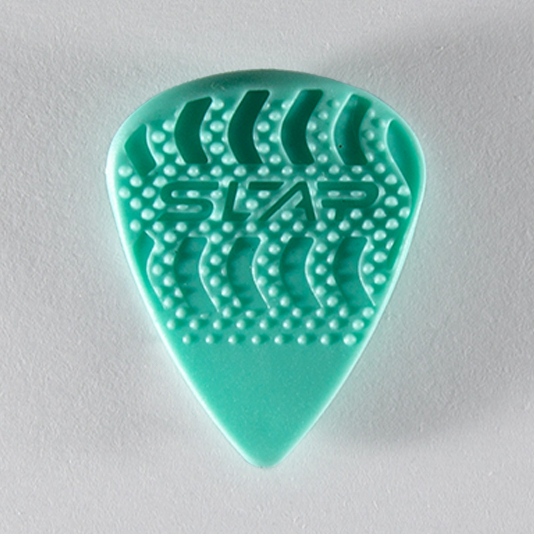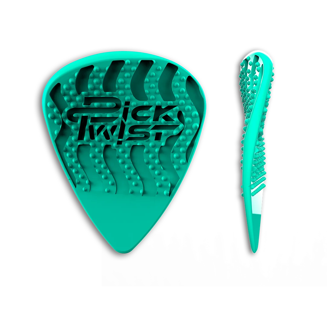 A pick designed to add a new level of percussive impact to guitar and bass.